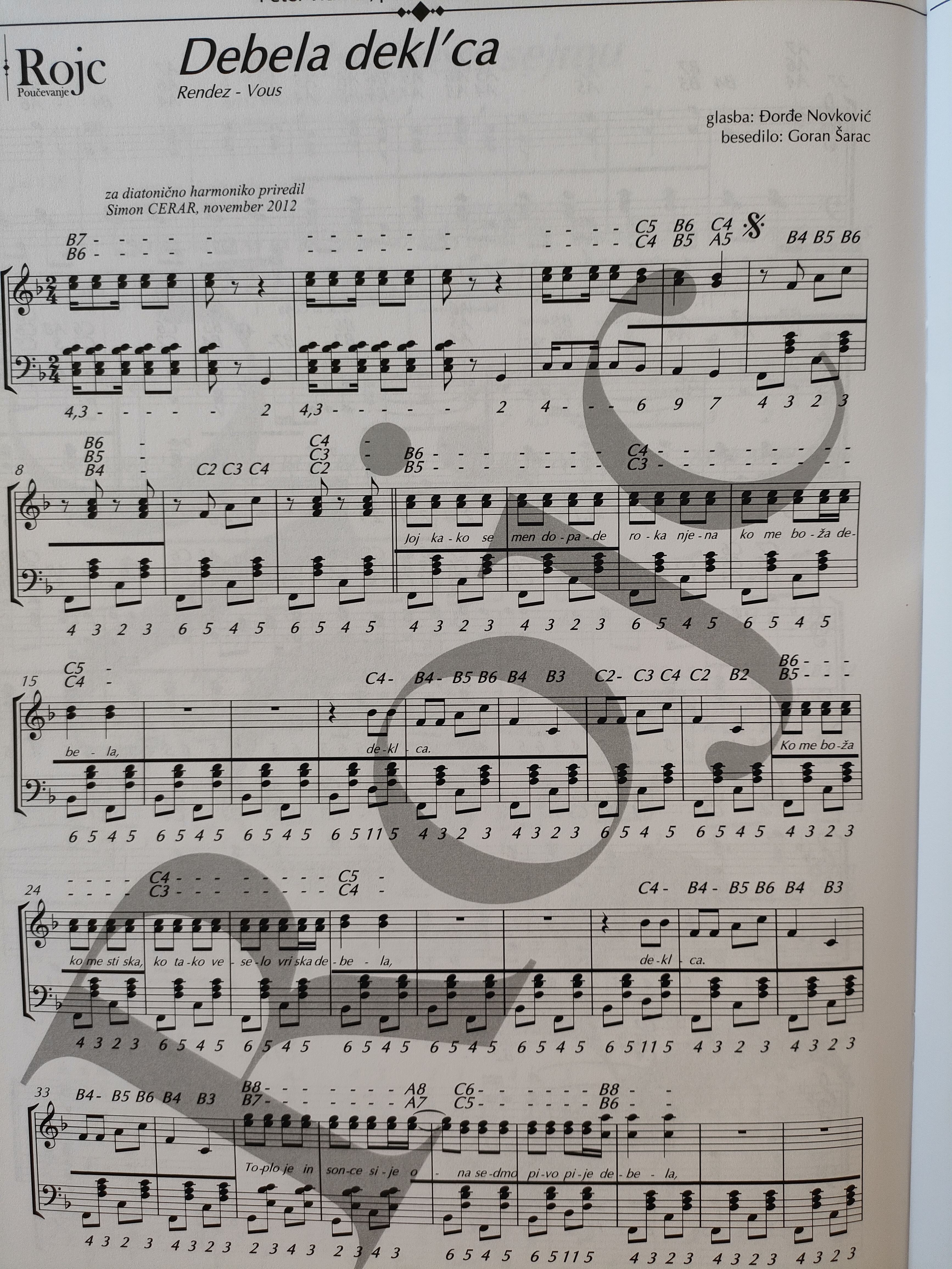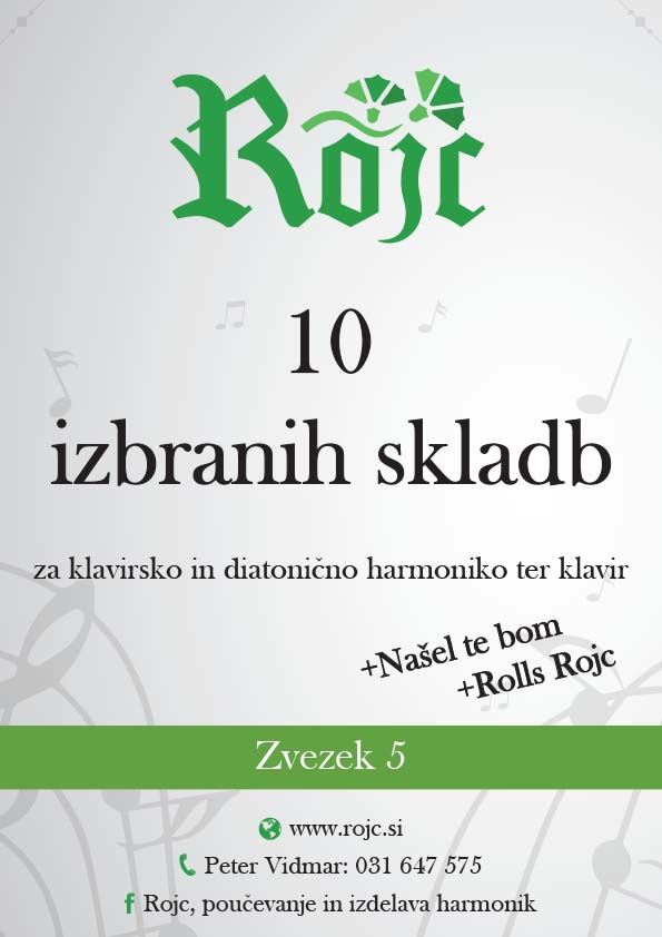 10 IZBRANIH SKLADB ZVEZEK 5 ZA KLAVIRSKO IN DIATONIČNO HARMONIKO TER KLAVIR