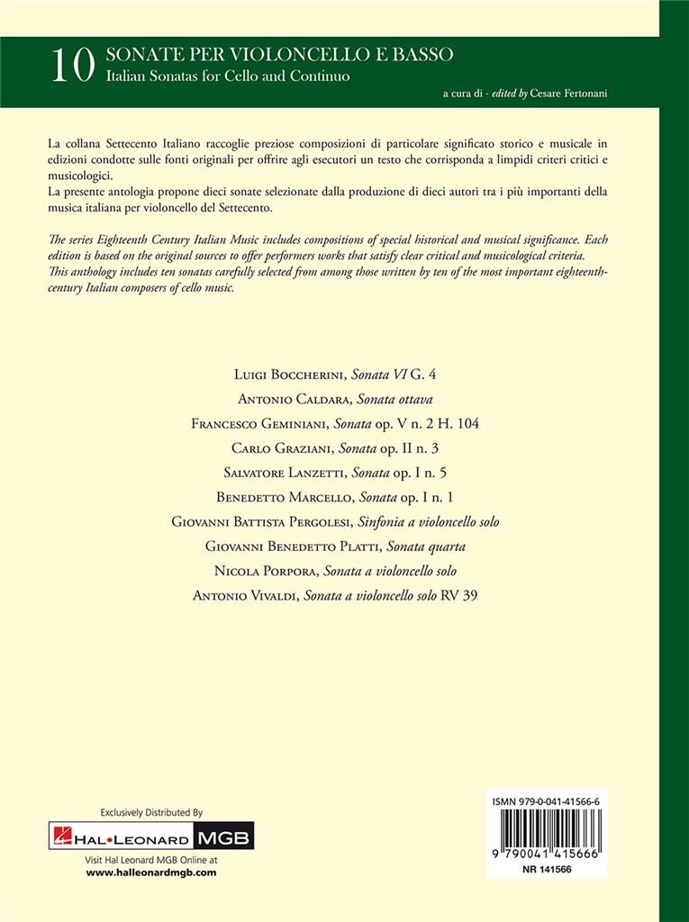 10 SONATE PER VIOLONCELLO E BASSO/10 ITALIAN SONATAS FOR CELLO AND CONTINUO