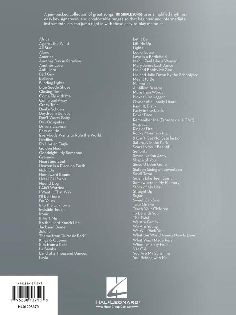 101 SIMPLE SONGS ALTO SAXOPHONE iz kategorije zabavna glasba sodi med odlične saksofon.