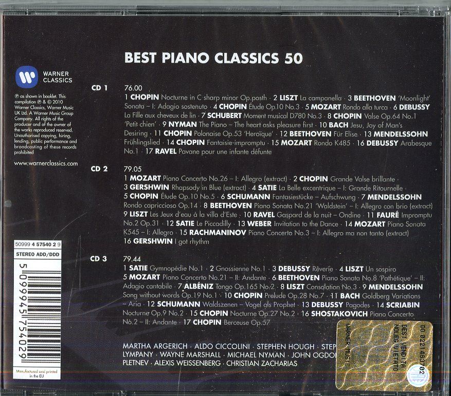 50 BEST PIANO CLASSICS 3CD iz kategorije klasika in slovenska narodna sodi med odlične cd.