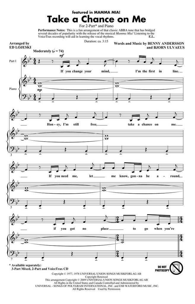 ABBA:TAKE A CHANCE ON ME 2-PART iz kategorije zbori sodi med odlične vokal.
