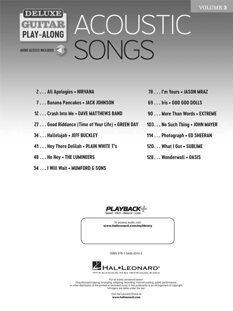 ACOUSTIC SONGS PLAY ALONG GUITAR +AUDIO ACCESS VOL.3 iz kategorije skladbe sodi med odlične akustična kitara.