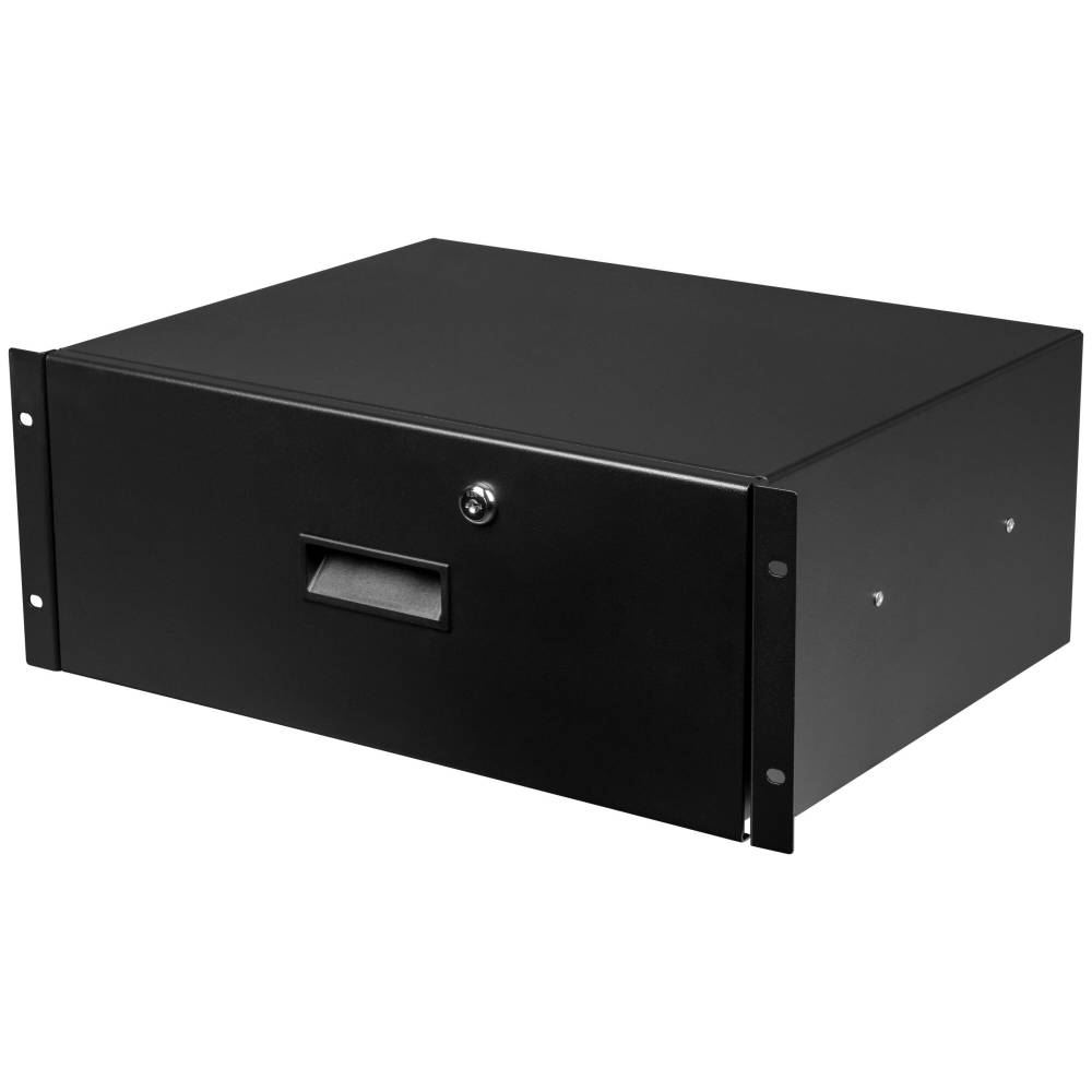 Zaklepljiv 19” - 4U - jeklena konstrukcija, kovinski predal s teleskopskimi pocinkanimi vodili. Notranja širina: 400 mm. Notranja globina: 340 mm. Reliefna črna površina.