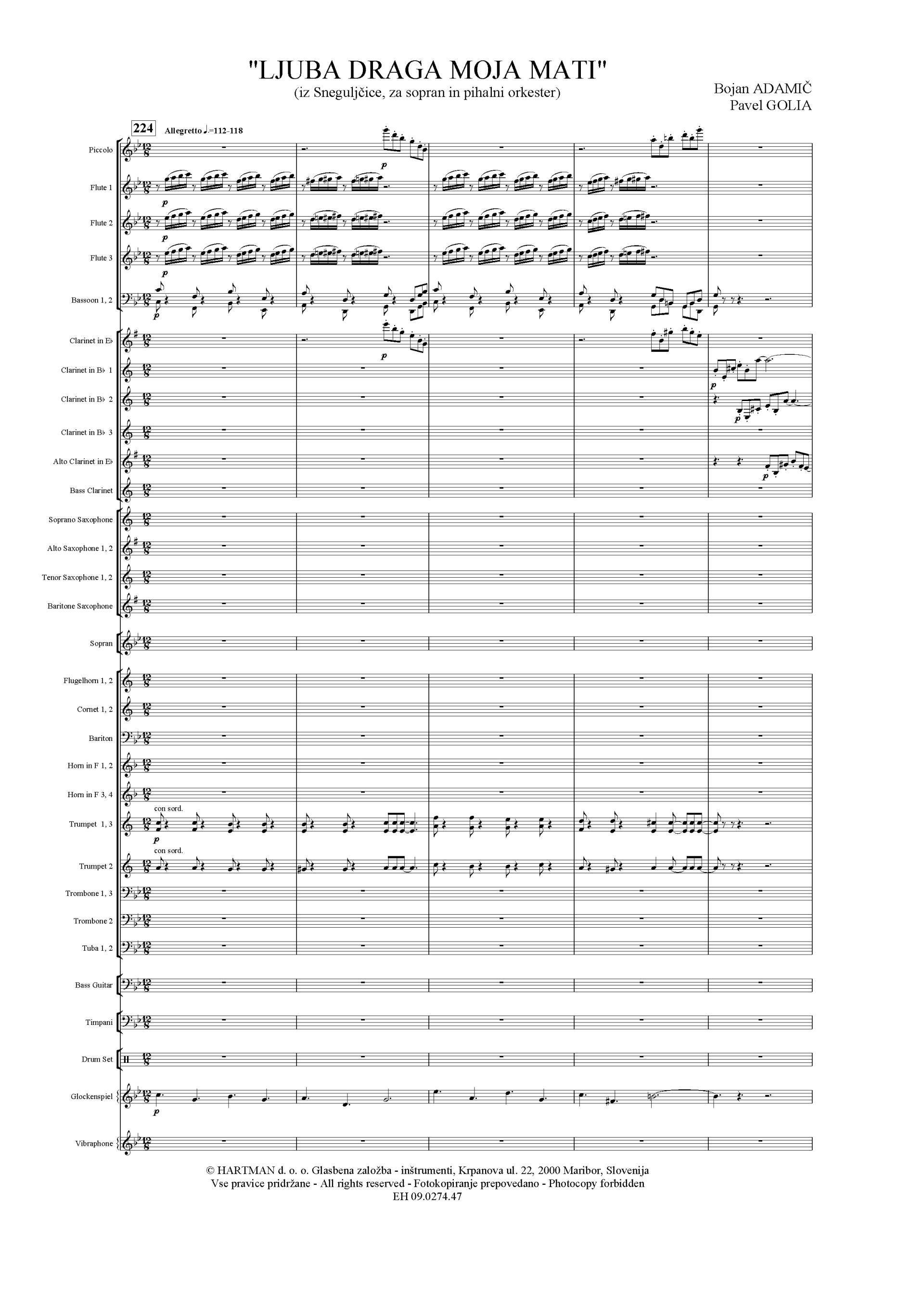 ADAMIČ B. - LJUBA DRAGA MOJA MATI, arija iz Sneguljčice za sopran in pihalni ork iz kategorije zabavni program sodi med odlične Pihalni orkester.Opero Sneguljcica je Policijski ork ...