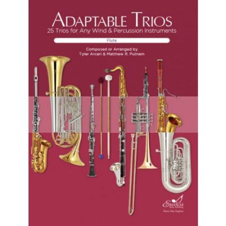 Adaptable Trios vsebuje 25 na novo sestavljenih ali aranžiranih triov, ki jih je mogoče prilagodljivo uporabljati s katero koli kombinacijo pihal in tolkal, zaradi česar so neprecenljiv vir v sodobni godbeni sobi! Adaptable Trios, napisan na dostopni stopnji 1,5–3 razreda, sledi priljubljenim knjigam Adaptable Duets istih skladateljev. Tyler Arcari in Matthew R. Putnam prinašata s seboj bogato izobraževalno izkušnjo kot glasbena pedagoga za ustvarjanje triov, ki jih je zabavno igrati in glasbeno spodbudno. Prilagodljivi trioji bodo zagotovo takoj postali priljubljeni.
