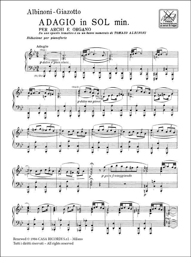ALBINONI:ADAGIO IN SOL MINORE PER PIANOFORTE iz kategorije skladbe, sodi med odlične klavir.