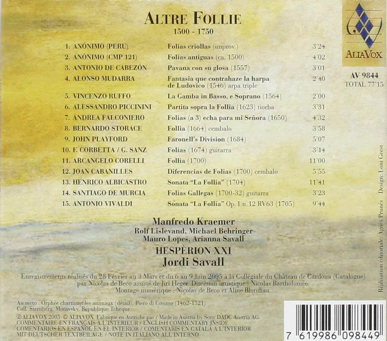 ALTRE FOLLIE-JORDI SAVALL iz kategorije klasika in slovenska narodna sodi med odlične cd.