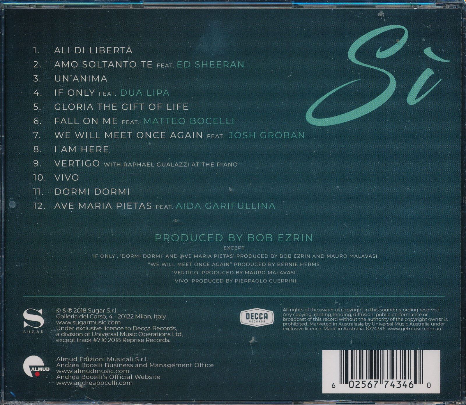 ANDREA BOCELLI/SI iz kategorije klasika in slovenska narodna sodi med odlične cd.
