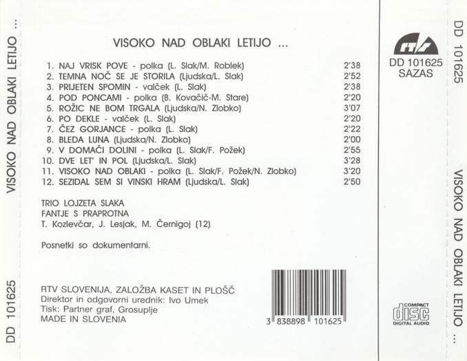 ANSAMBEL LOJZETA SLAKA/ VISOKO NAD OBLAKI LETIJO... iz kategorije zabavna in etno glasba sodi med odlične cd.