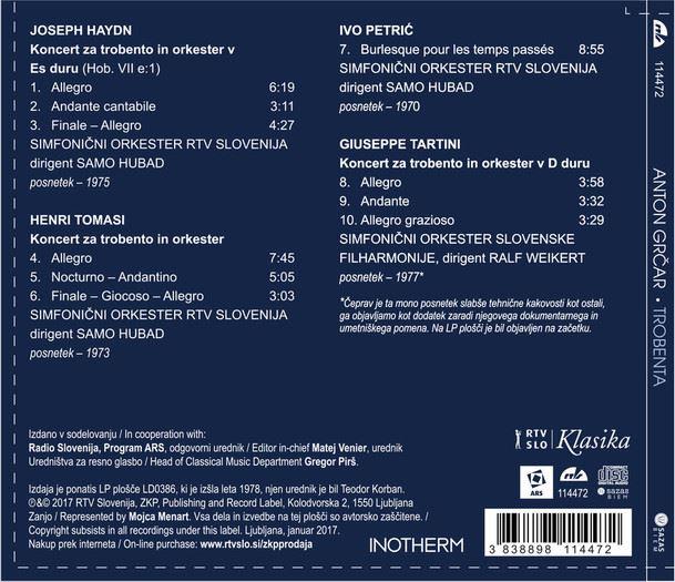 ANTON GRČAR TROBENTA iz kategorije klasika in slovenska narodna sodi med odlične cd.