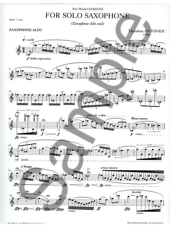 ANTONIOU T:FOR SOLO SAX iz kategorije skladbe sodi med odlične saksofon.