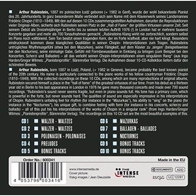 ARTHUR RUBINSTEIN MY CHOPIN FAVORITES 10 CD COLLECTION iz kategorije klasika in slovenska narodna sodi med odlične cd.