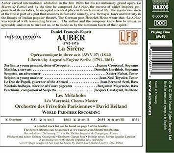 AUBER:LA SIRENE/REILAND iz kategorije klasika in slovenska narodna sodi med odlične cd.Auber si je v poznih dvajsetih letih 19. stoletja prislužil mednarodno oboževanje s svojo rev ...