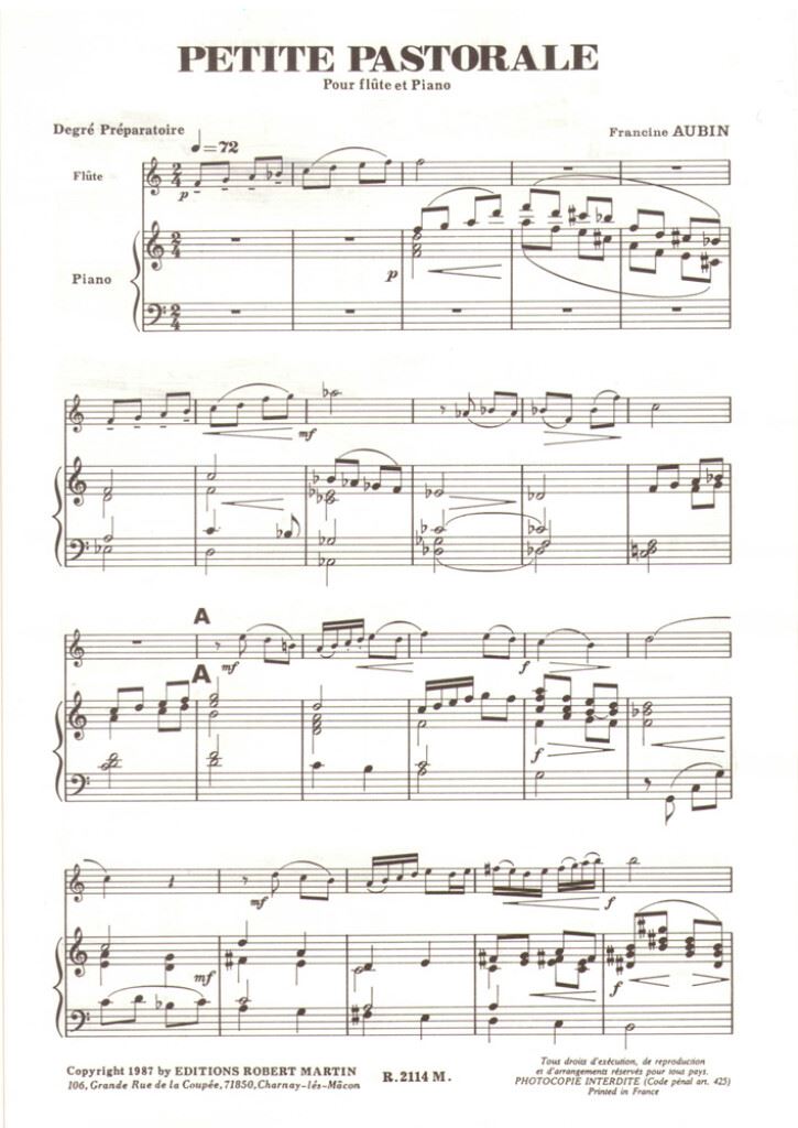 AUBIN:PETITE PASTORALE iz kategorije skladbe sodi med odlične flavta.