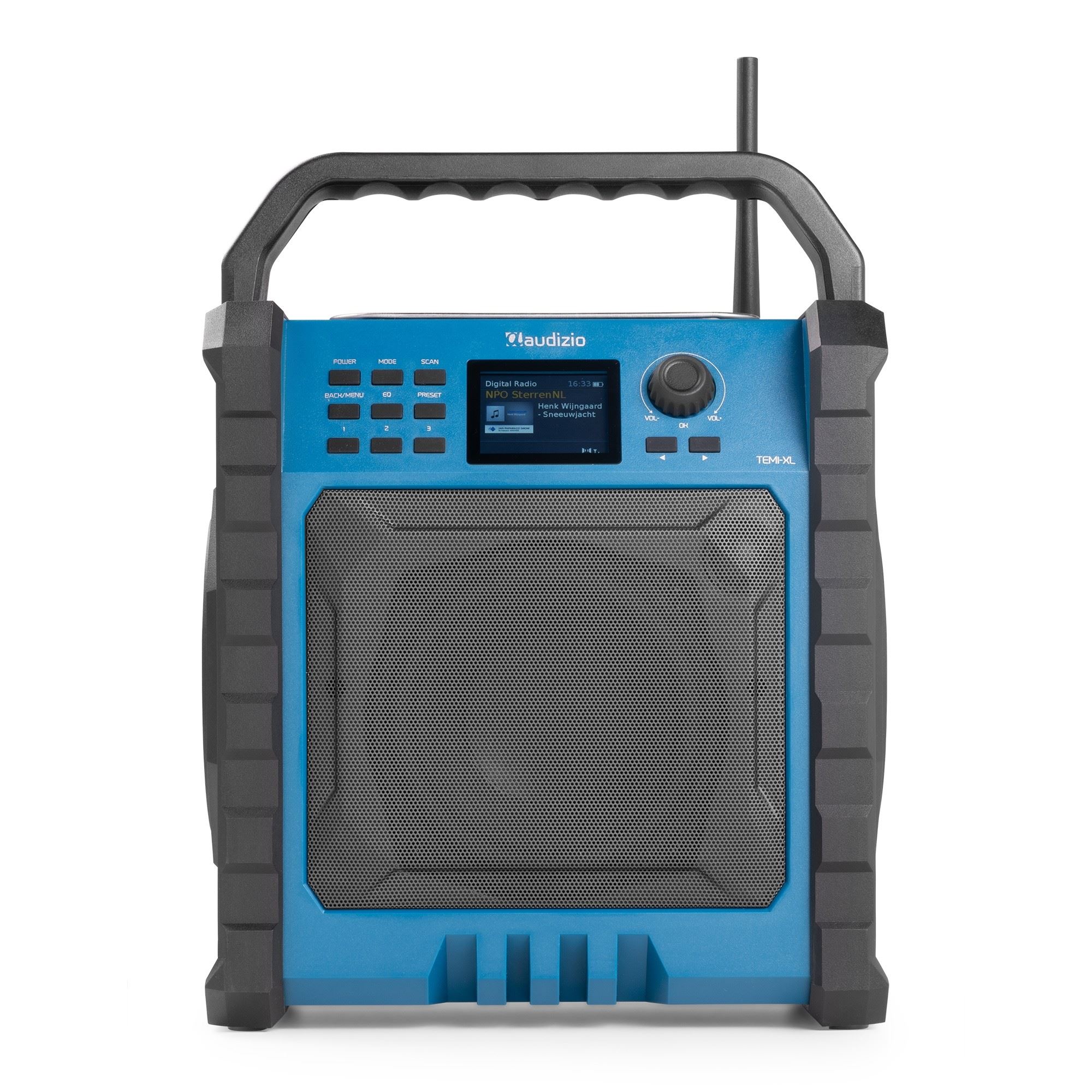 Audizio Temi-XL je zmogljiv gradbeni radio, izdelan za zahtevno uporabo. Z visokozmogljivimi zvočniki, veliko polnilno baterijo z zmogljivostjo 2,550 mAh in visoko izhodno močjo Temi-XL zagotavlja glasen in jasen zvok ves dan. Opremljen je z DAB+, FM in Bluetoothom, vključuje pa tudi magnetni pladenj za vijake, zadnji predal za shranjevanje s priključkom za polnjenje telefona in robustno ohišje za zahtevne pogoje.