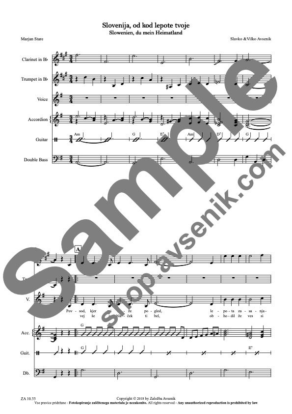 AVSENIK SLOVENIJA OD KOD LEPOTE TVOJE PRIREDBA ZA KVINTET