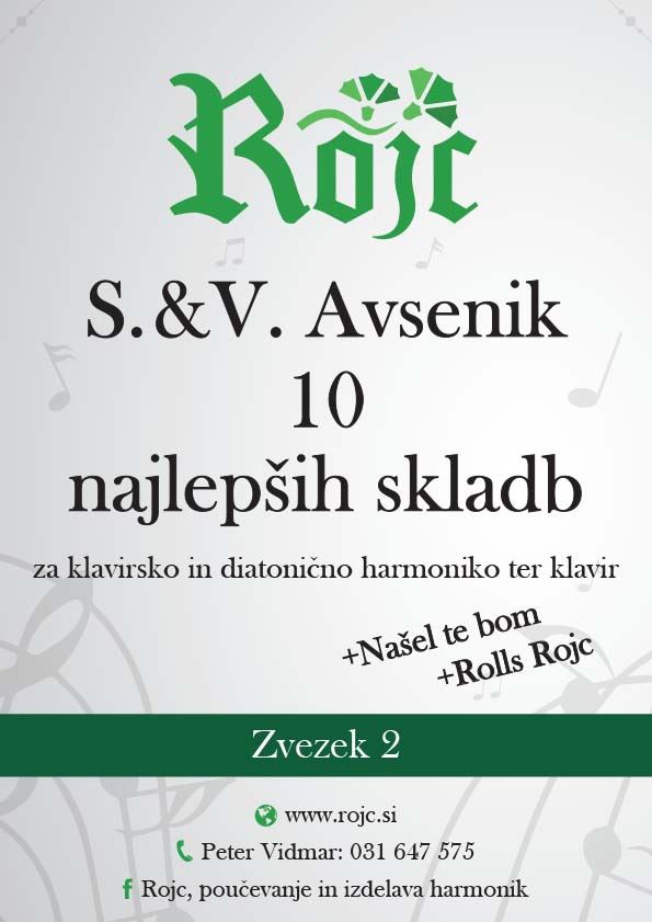 AVSENIK:10 NAJLEPŠIH SKLADB ZVEZEK 2 KLAVIRSKO,DIATONIČNO HARMONIKO IN KLAVIR