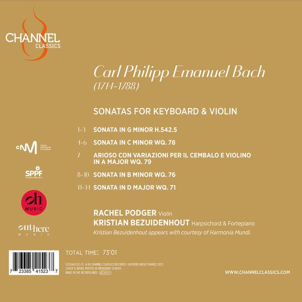 BACH C.P.E.:SONATAS FOR KEYBOARD % VIOLIN/RACHEL PODGER/KRISTIAN BEZUIDENHOUT