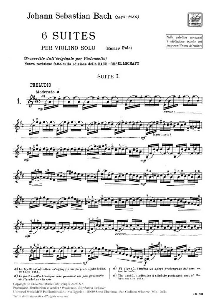 BACH J.S.:6 SUITES CELLO FOR VIOLINO SOLO iz kategorije skladbe sodi med odlične violina.