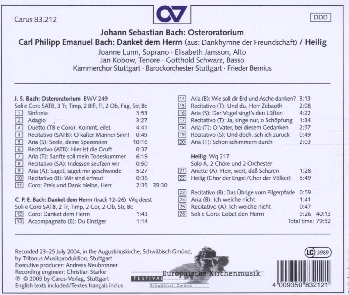 BACH J.S./BACH C.PH.E.:OSTERORATORIUM/DANKET DEM HERRN HEILIG/BERNIUS