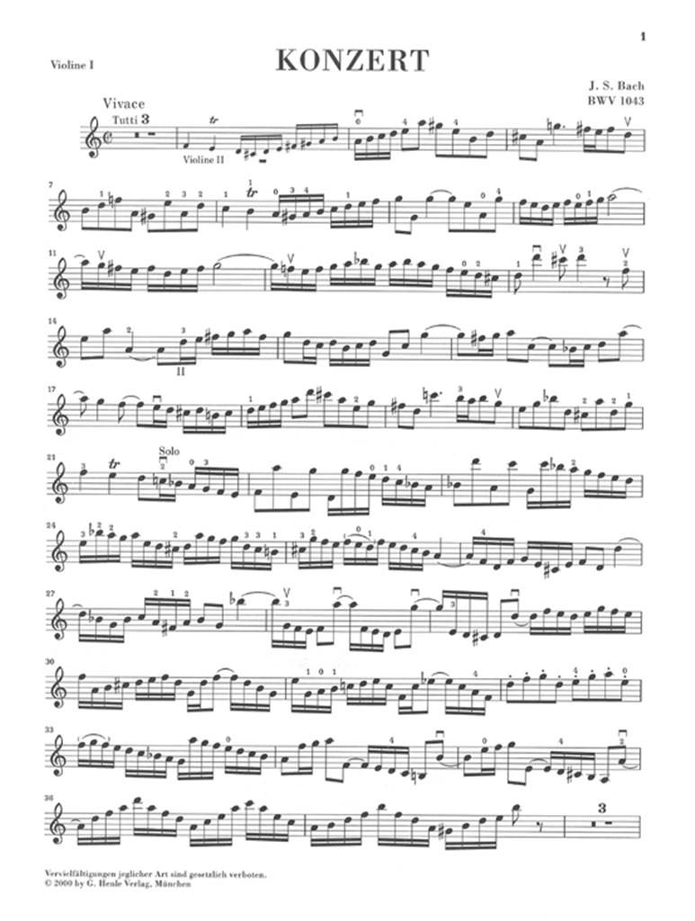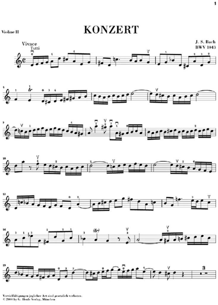 BACH J.S:DOPPELKONZERT BWV 1043 D-MOLL/CONCERTO FOR TWO VIOLINS PIANO REDUCTION iz kategorije skladbe sodi med odlične violina.