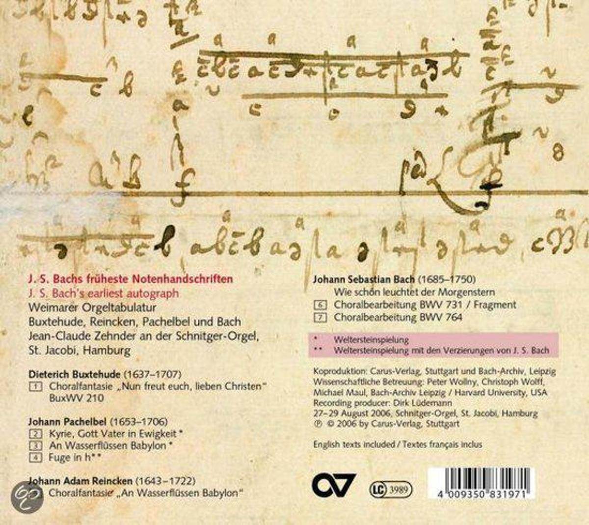 BACH J.S.:EARLIEST AUTOGRAPHS/ZEHNDER