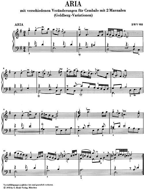 Variacije "Goldberg" so nedvomno najpomembnejši klavirski cikel 18. stoletja. Zanje lahko primerjamo samo Beethovnove "Diabelli" variacije iz 19. stoletja, kar zadeva njihov daljnosežni pomen. Bachov rokopis morda ne bi preživel, toda popravljeni prvi tisk "Aria mit verschiedenen Veraenderungen vors Clavicimbal mit 2 Manualen" (s tem naslov) je to storil. Ta prva izdaja služi kot glavni vir za našo izdajo - poleg tega so glasbeno besedilo primerjali z drugimi viri, na primer z Bachovim zapisom o "Ariji" (ki še ni omenjen kot tak) v majhnem zvezku za Anno Magdaleno .