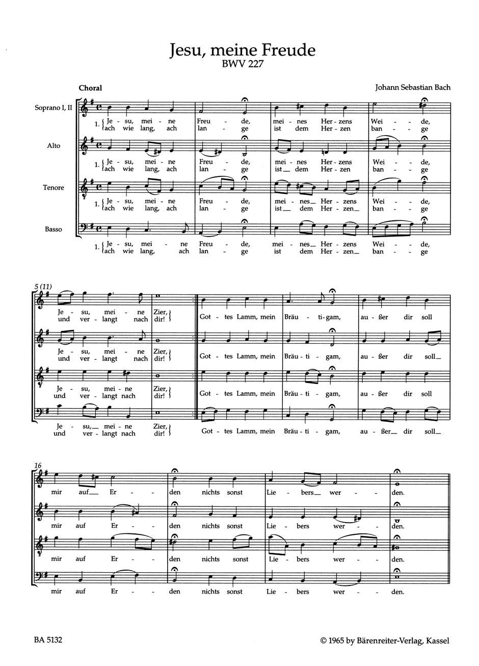 BACH J.S.:JESU,MEINE FREUDE CHOIRE BWV 227 CHORAL SCORE