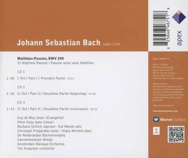BACH J.S.:MATTHAUS PASSION/SCHLICK/KOOPMAN 3CD