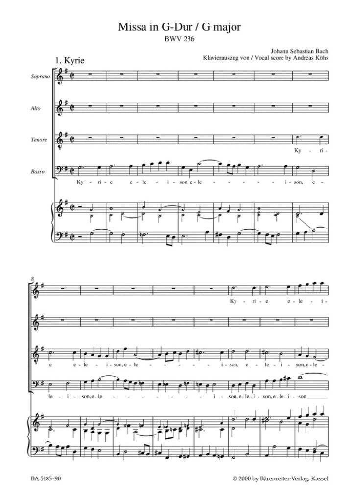 BACH J.S.:MISSA IN G-DUR BWV 236 VOCAL SCORE iz kategorije skladbe sodi med odlične vokal.