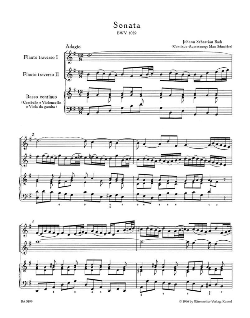 BACH J.S.:TRIO SONATA IN G MAJOR BWV 1039 FOR TWO FLUTES AND BASSO CON.