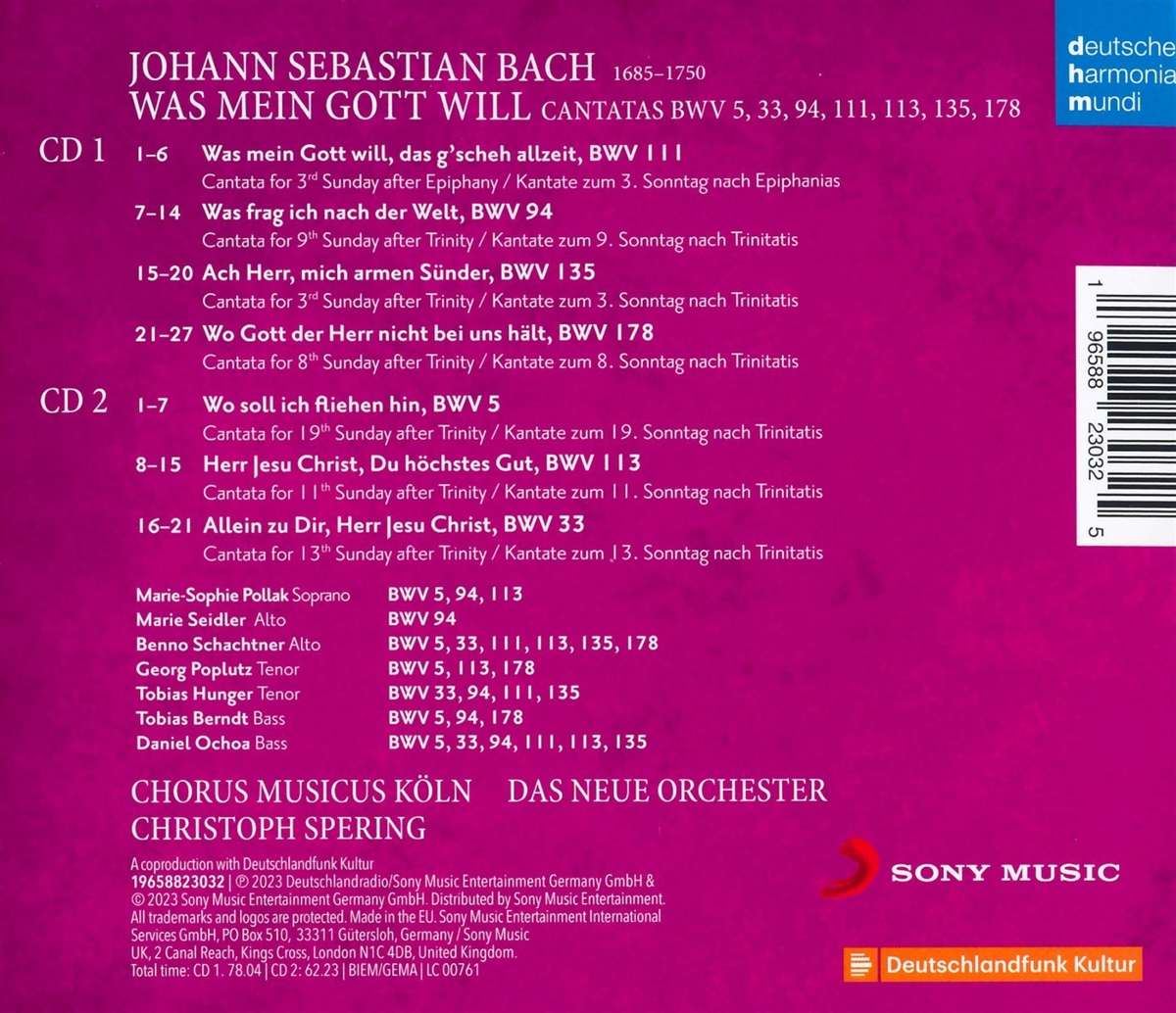 BACH J.S.:WAS MEIN GOTT WILL CANTATAS BWV 5,33,94,111,113,135,178/SPERING 2CD iz kategorije klasika in slovenska narodna sodi med odlične cd.