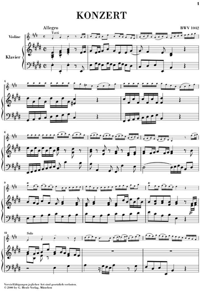 BACH J:VIOLINKONZERT/VIOLIN CONCERTO E-DUR BWV 1042 VIOLIN AND PIANO iz kategorije skladbe sodi med odlične violina.