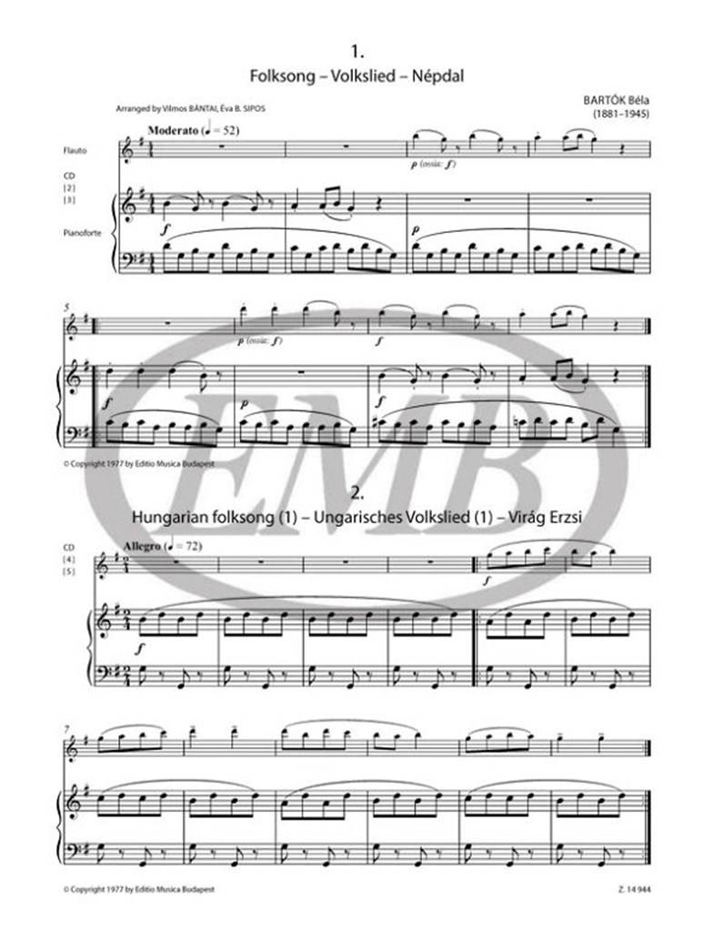 BARTOK:13 EASY PIECES FOR FLUTE AND PIANO +CD iz kategorije skladbe sodi med odlične flavta.EMBZ14944 1. Folksong - (First Term at the Piano, No. 7) 2. Hungarian Folksong (1) (Fir ...