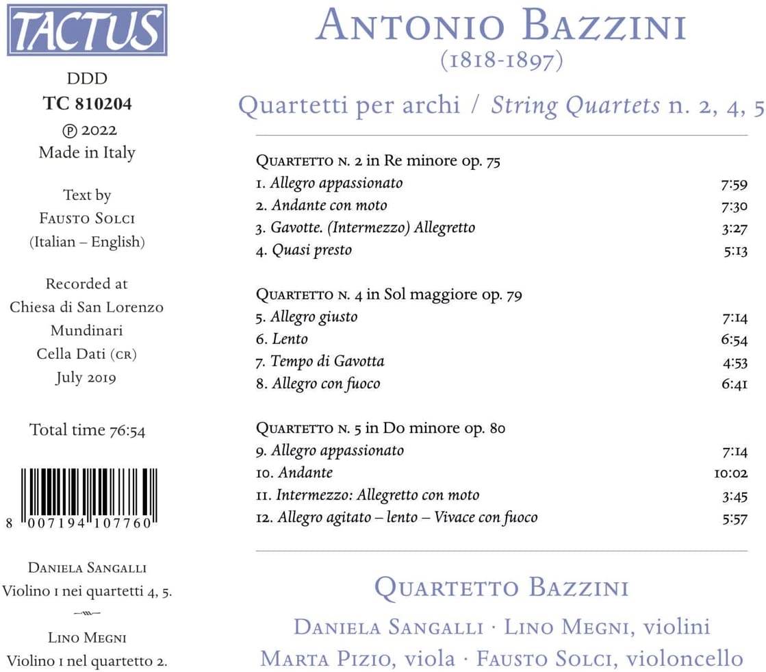 BAZZINI:QUARTETTI N.2,4,5 iz kategorije klasika in slovenska narodna sodi med odlične cd.