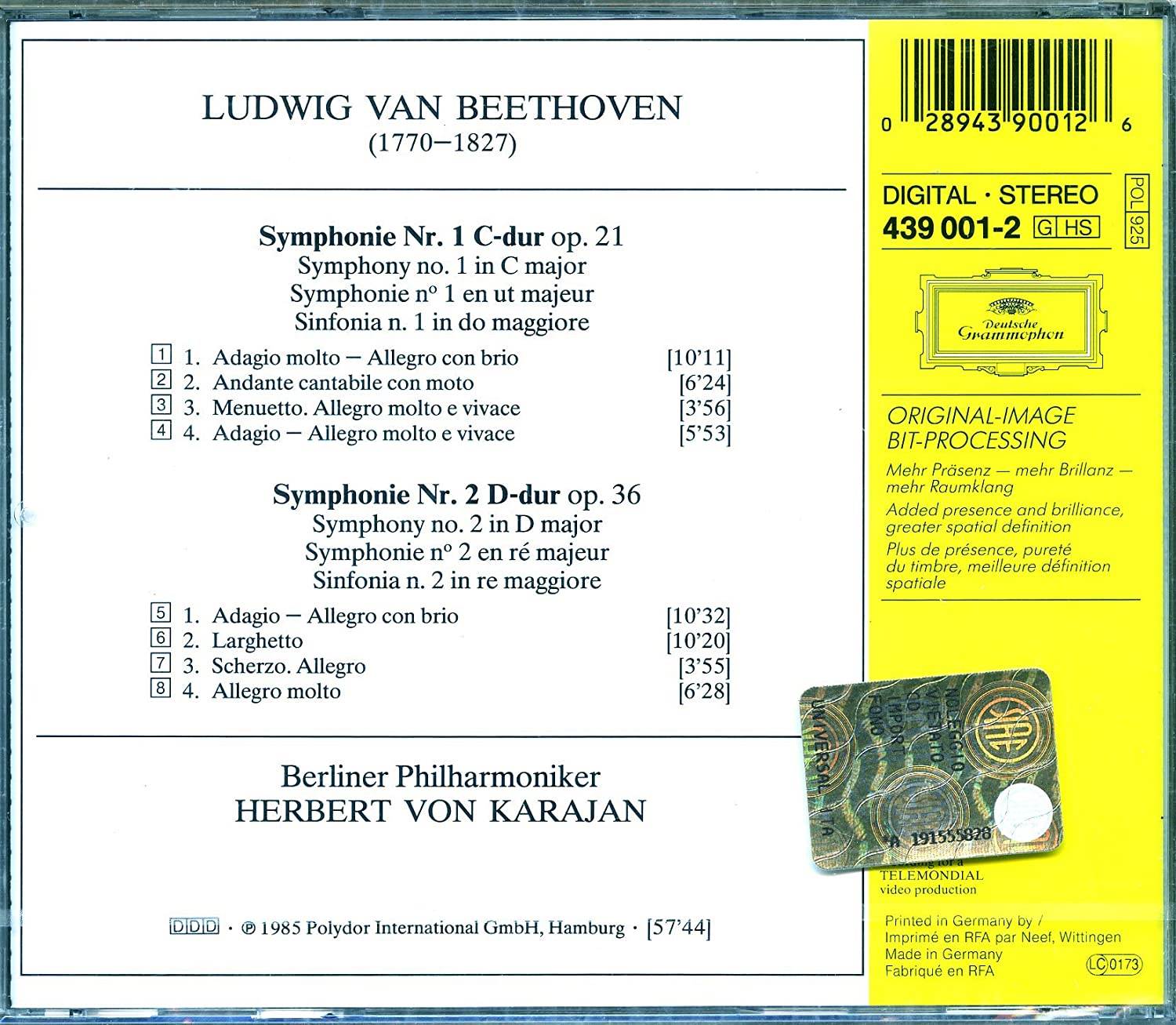 BEETHOVEN : SYMPHONY NOS 1&2/KARAJAN