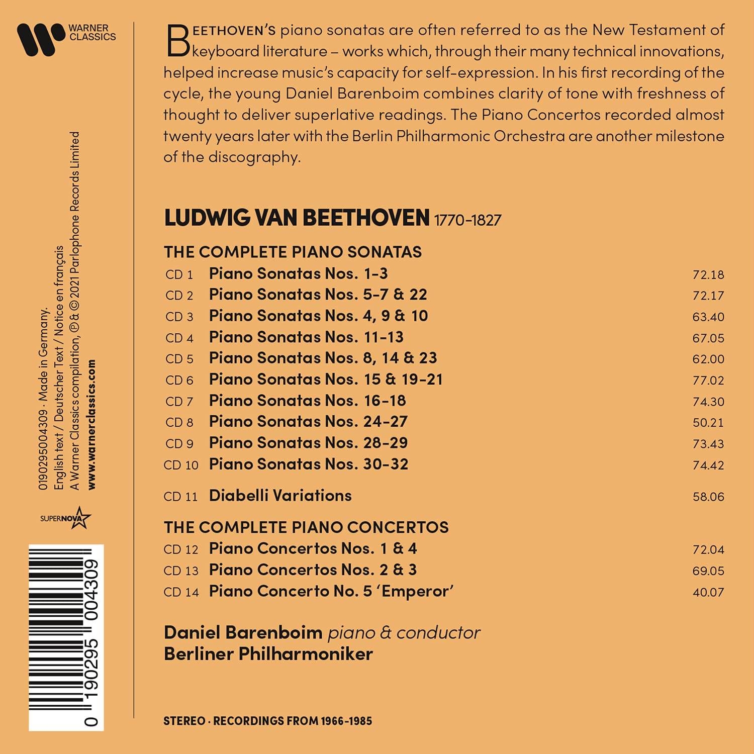 BEETHOVEN:COMPLETE PIANO SONATAS & CONCERTOS/BARENBOIM 14CD iz kategorije klasika in slovenska narodna sodi med odlične cd.