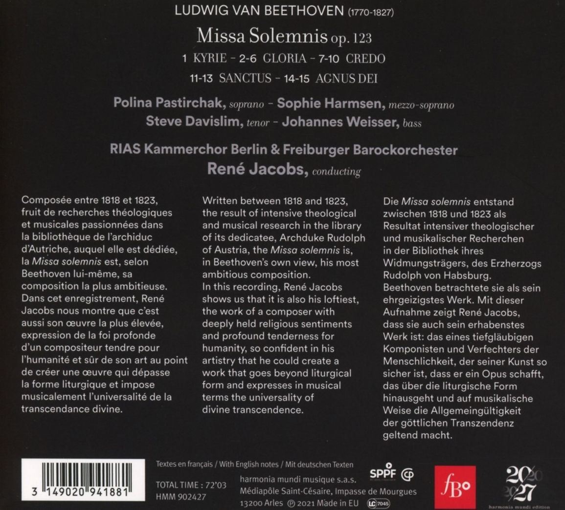BEETHOVEN:MISSA SOLEMNIS/RENE JACOBS iz kategorije klasika in slovenska narodna sodi med odlične cd.