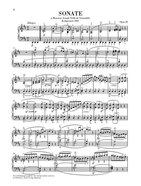 "Moje skladbe so zame zelo donosne in lahko rečem, da imam več naročil, kot jih je skoraj mogoče izpolniti." Beethoven je slednjega pisal prijatelju leta 1801. Pravkar je končal svojo opcijo "Moonlight Sonata". 27 št. 2, ko je začel zapisovati prve skice za svojo Sonato op. 28. Elementi pastoralne glasbe, kot so plesni trojni meter, pa tudi note pedal in petine v basu, ki posnemajo gajde, spominjajo na poznejšo 6. simfonijo. Rustikalni značaj je ustvaril epitet dela "Sonate Pastorale". Po temeljiti reviziji zdaj to sonato prvič predstavljamo v cenovno ugodni izdaji. Za prste je poskrbel nihče drug kot Murray Perahia.