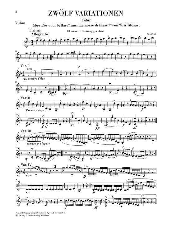 BEETHOVEN:VARIATIONS, RONDO, DANCES WO040-42 VIOLIN AND PIANO iz kategorije skladbe sodi med odlične violina.