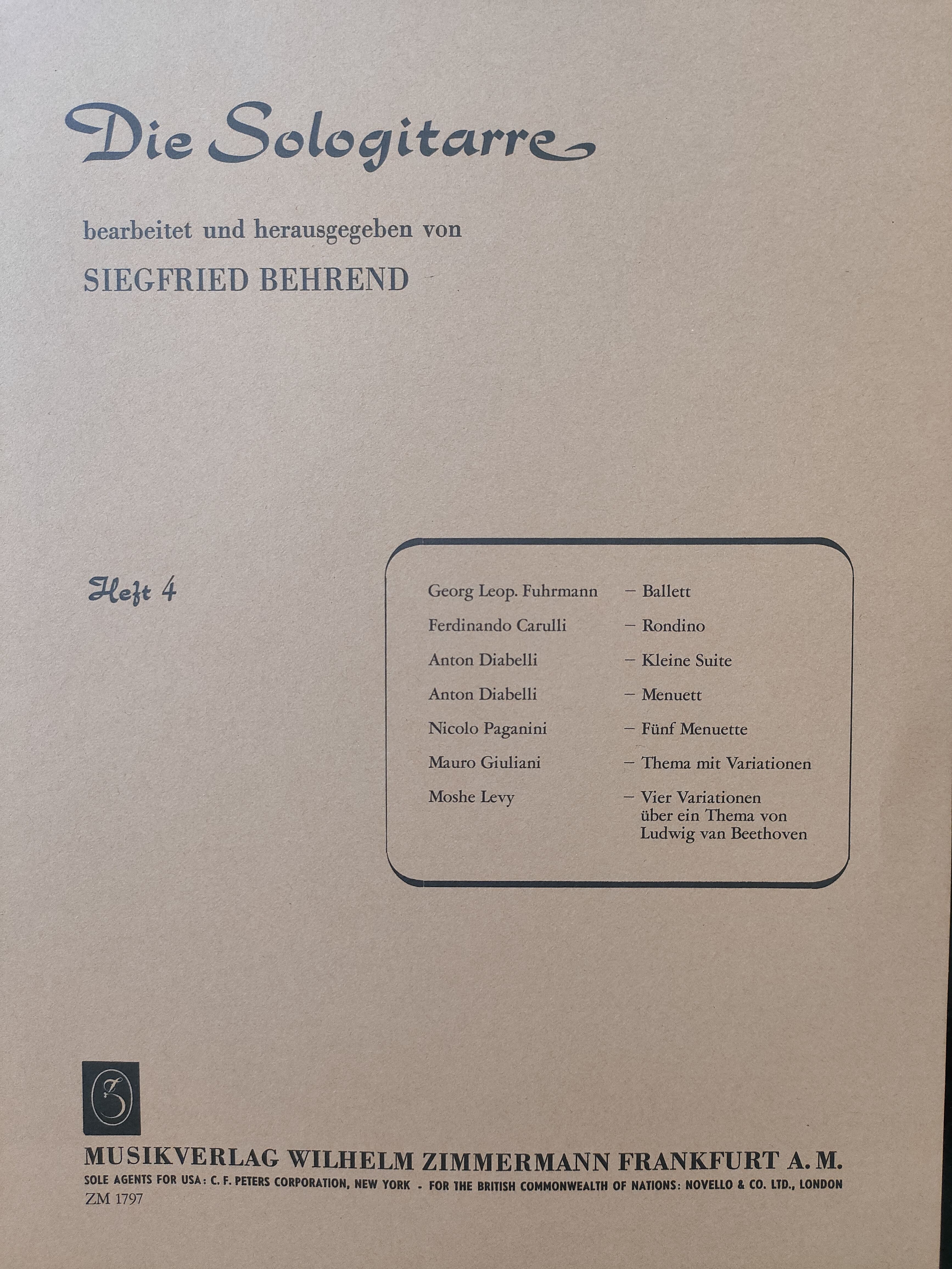 BEHREND:DIE SOLOGITARRE HEFT 4 iz kategorije skladbe sodi med odlične klasična kitara.ZM1797 G.L. Fuhrmann: Ballett F. Carulli: Rondino A. Diabelli: Kleine Suite A. Diabelli: Menu ...
