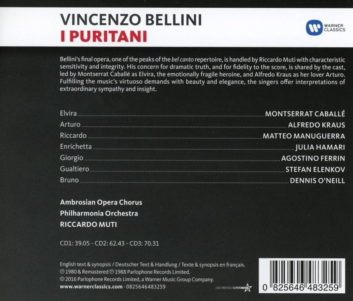 BELLINI:I PURITANI/CABALLE/KRAUS/FERRIN/MANUGUERRA/MUTI 3CD iz kategorije klasika in slovenska narodna sodi med odlične cd.