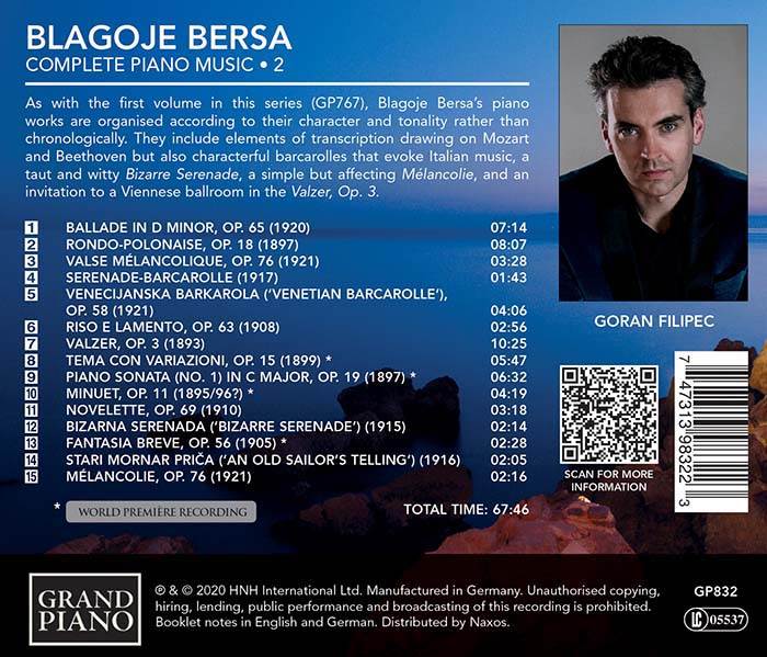 BERSA:COMPLETE PIANO MUSIC/GORAN FILIPEC iz kategorije klasika in slovenska narodna sodi med odlične cd.