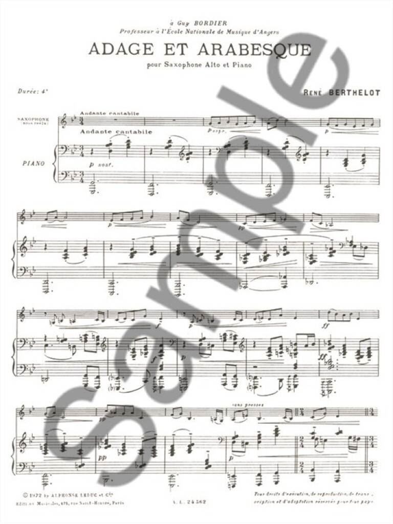 BERTHELOT:ADAGE ET ARABESQUE, SAXOPHONE ALTO AND PIANO iz kategorije skladbe sodi med odlične saksofon.