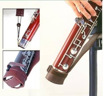 BG pas za fagot B06 Seat Strap je izdelan iz usnja, na spodnjem delu ima prilagodljiv nastavek v obliki čaše kamor namestimo spodnji del fagota.