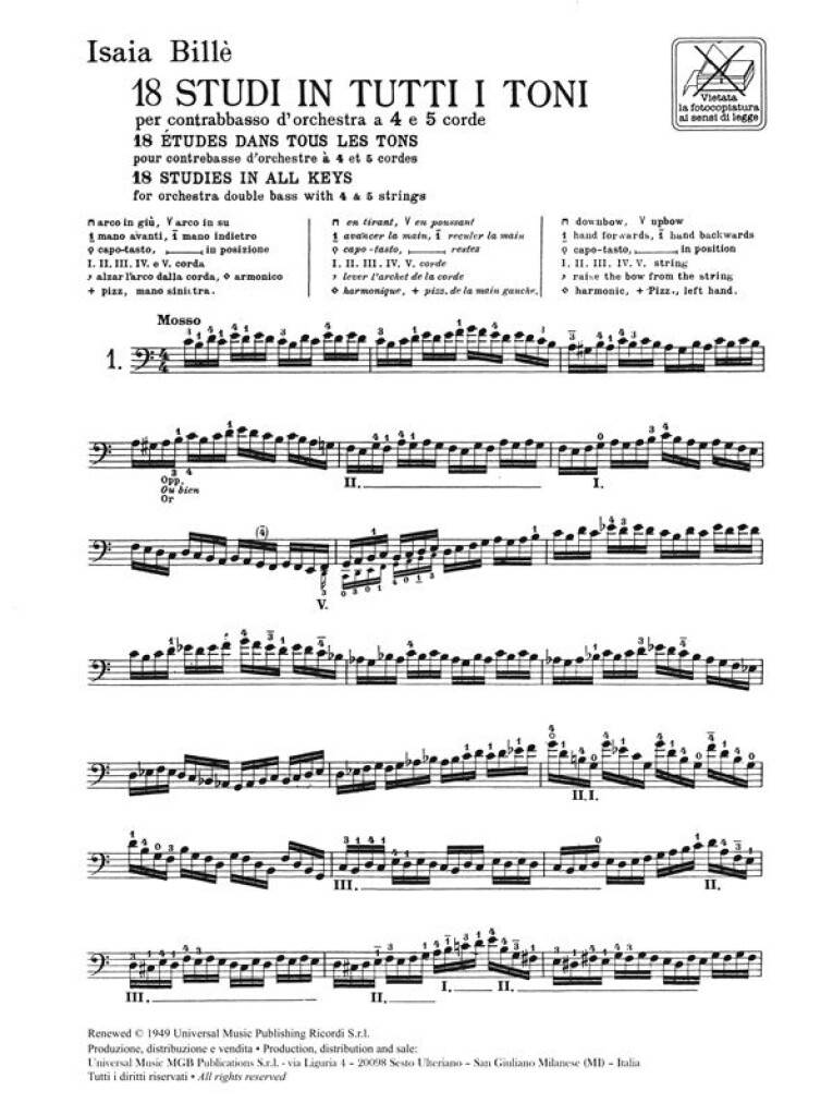 BILLE:18 STUDI IN TUTTI I TONI PER CONTRABBASSO iz kategorije etude sodi med odlične kontrabas.