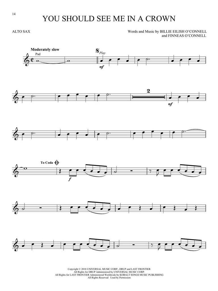 BILLIE EILISH PLAY ALONG ALTO SAX iz kategorije zabavna glasba sodi med odlične saksofon.
