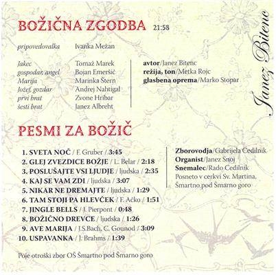 BITENC:BOŽIČNA ZGODBA/PESMI ZA BOŽIČ/PRIPOVEDUJE IVANKA MEŽAN