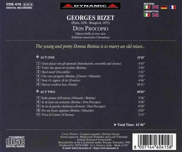 BIZET:DON PROCOPIO iz kategorije klasika in slovenska narodna sodi med odlične cd.