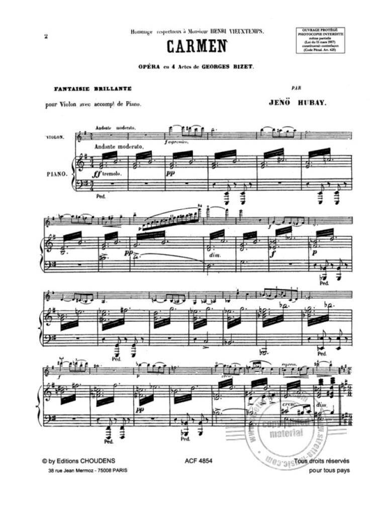 BIZET/HUBAY:CARMEN VIOLON & PIANO iz kategorije skladbe sodi med odlične violina.